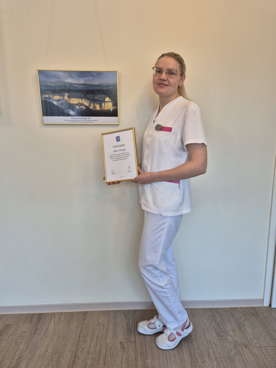 Õde Alice on väga õnnelik tunnustuse eest ja tänab haigla meeskonda - me tegime seda koos! Ka Lõuna-Eesti Haigla on õnnelik, et meie töötajaid märgatakse ja tunnustatakse ka väljaspool maja!