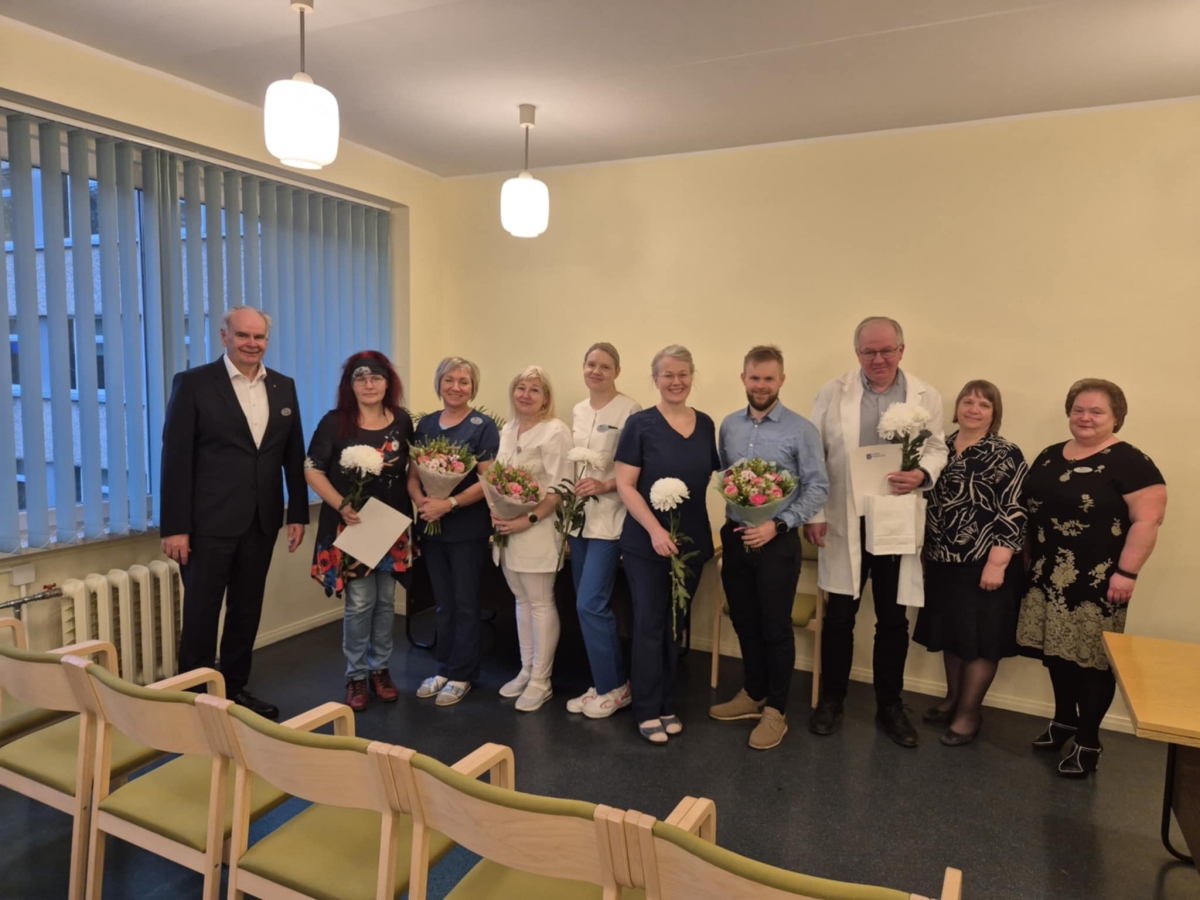 Pildil vasakult: juhatuse liige Arvi Vask, psühholoog Anne Luik, juhtumikorraldaja Maarika Pilt, vastutav õde Pille Jagomäe, infektsioonikontrolliõde Alice Venski, hooldaja Triin Karolin, kiirabi juht Kevin Lumi, psühhiaatriaosakonna juhataja Eduard Veidenberg, ravijuht Agnes Aart ja õendusjuht Jana Trolla.