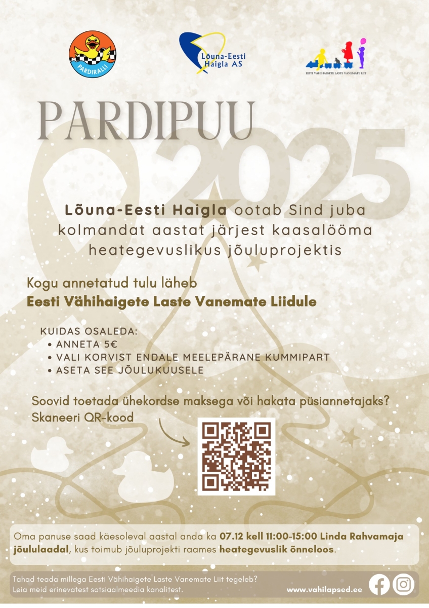 Juba kolmandat korda ootab Lõuna-Eesti Haigla fuajees pardipuu lahkeid annetajaid.